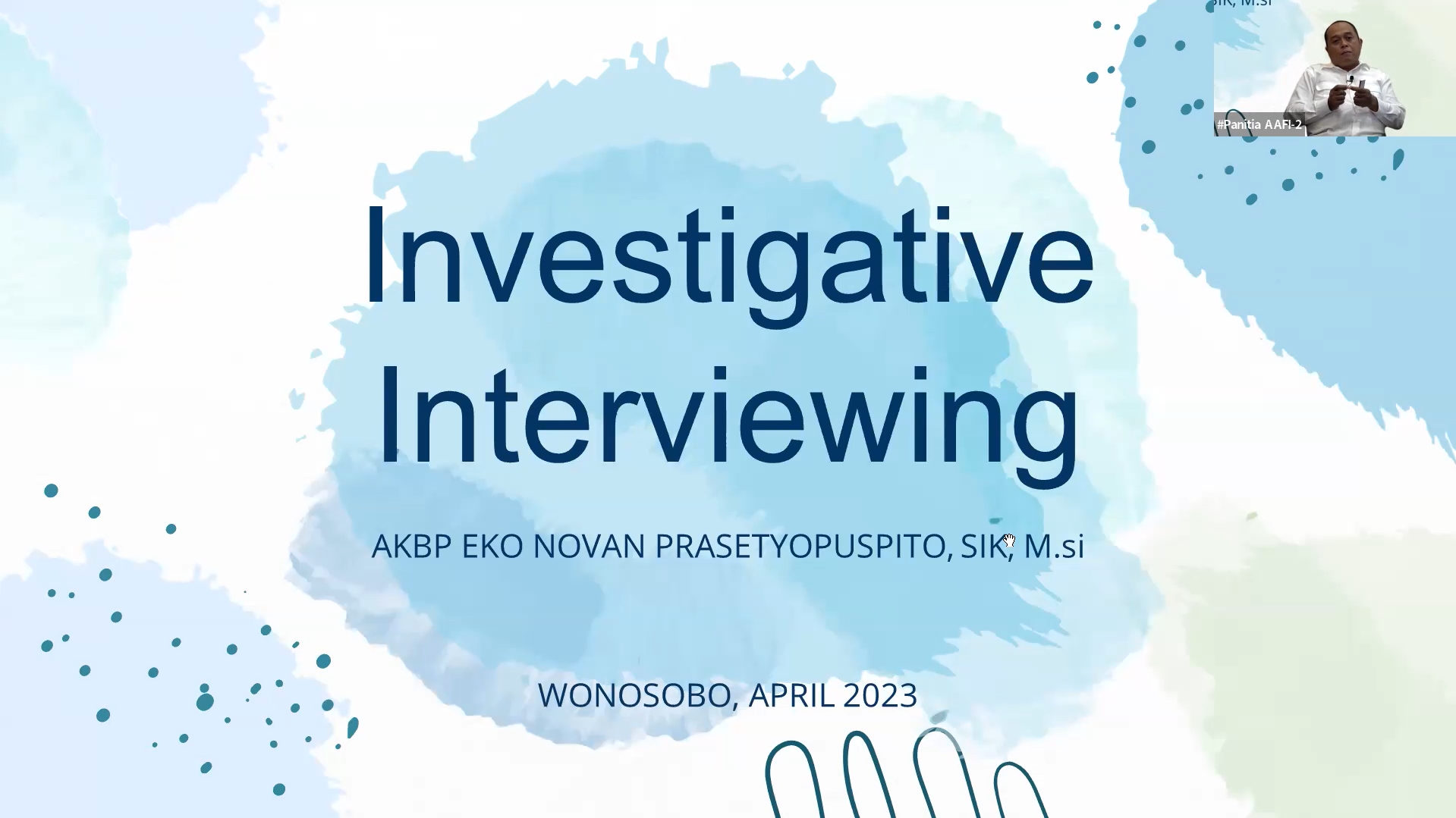 Berdasarkan fakta tersebut, Asosiasi Auditor Forensik Indonesia (AAFI UMAR) menggelar webinar bertajuk Investigative Interviewing I yang menghadirkan Bapak AKBP Eko Novan Prasetyopuspito, S.I.K, M.Si. (Kepala Kepolisian Resort Wonosobo) sebagai Narasumber dan Ibu Yezie Dwi Gumay Putri, S.Psi., M.Psi., CMTNLP (Asesor Assosiate PLN) selaku Moderator.