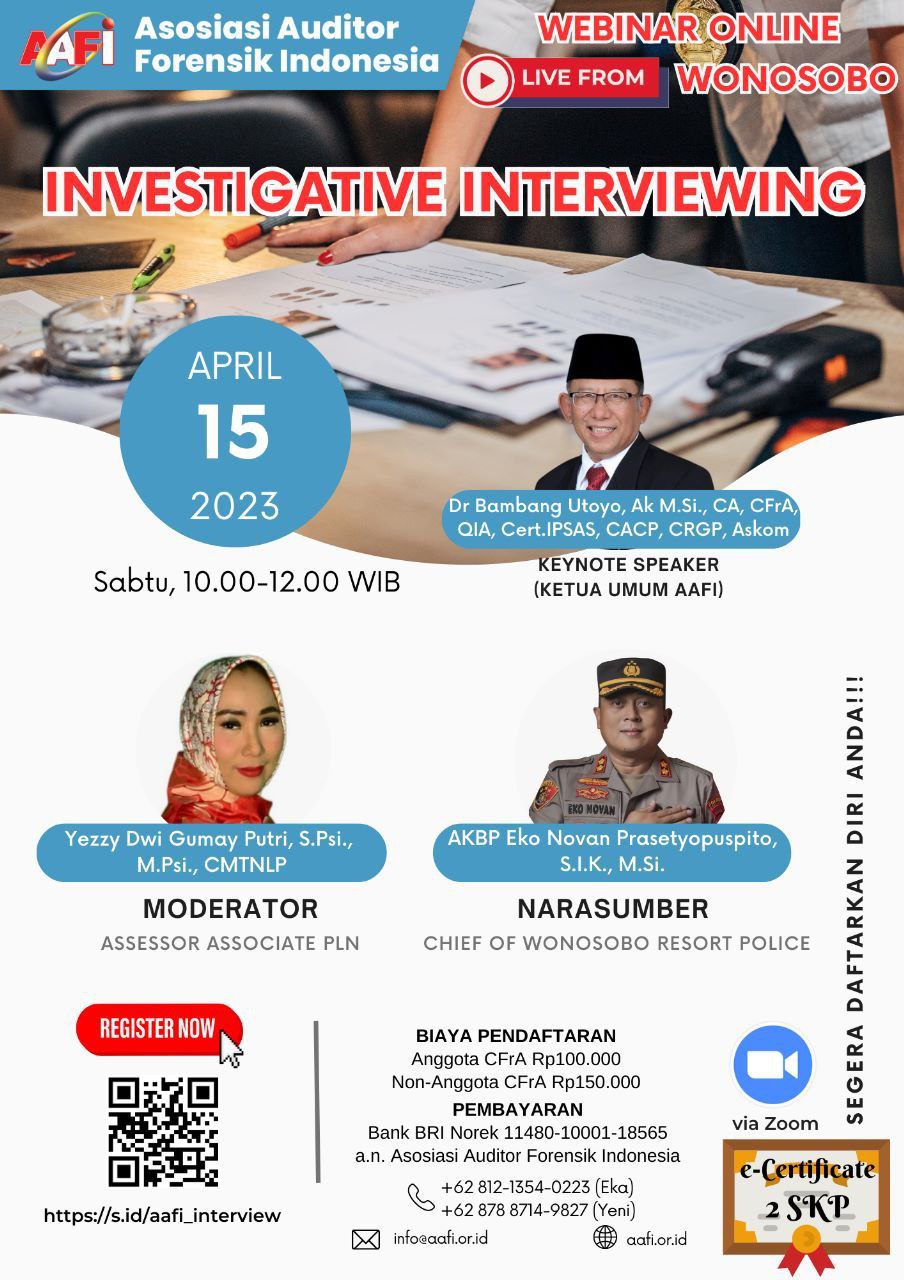 Asosiasi Forensik Auditor Indonesia (AAFI UMAR) mengundang Bapak/Ibu dalam Webinar Online dengan Tema INVESTIGATIVE INTERVIEWING